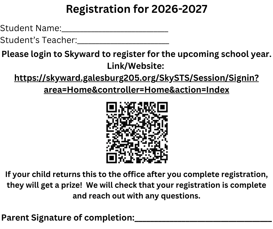Once you’ve completed registration, have your child return confirmation to the office—they’ll earn a prize!